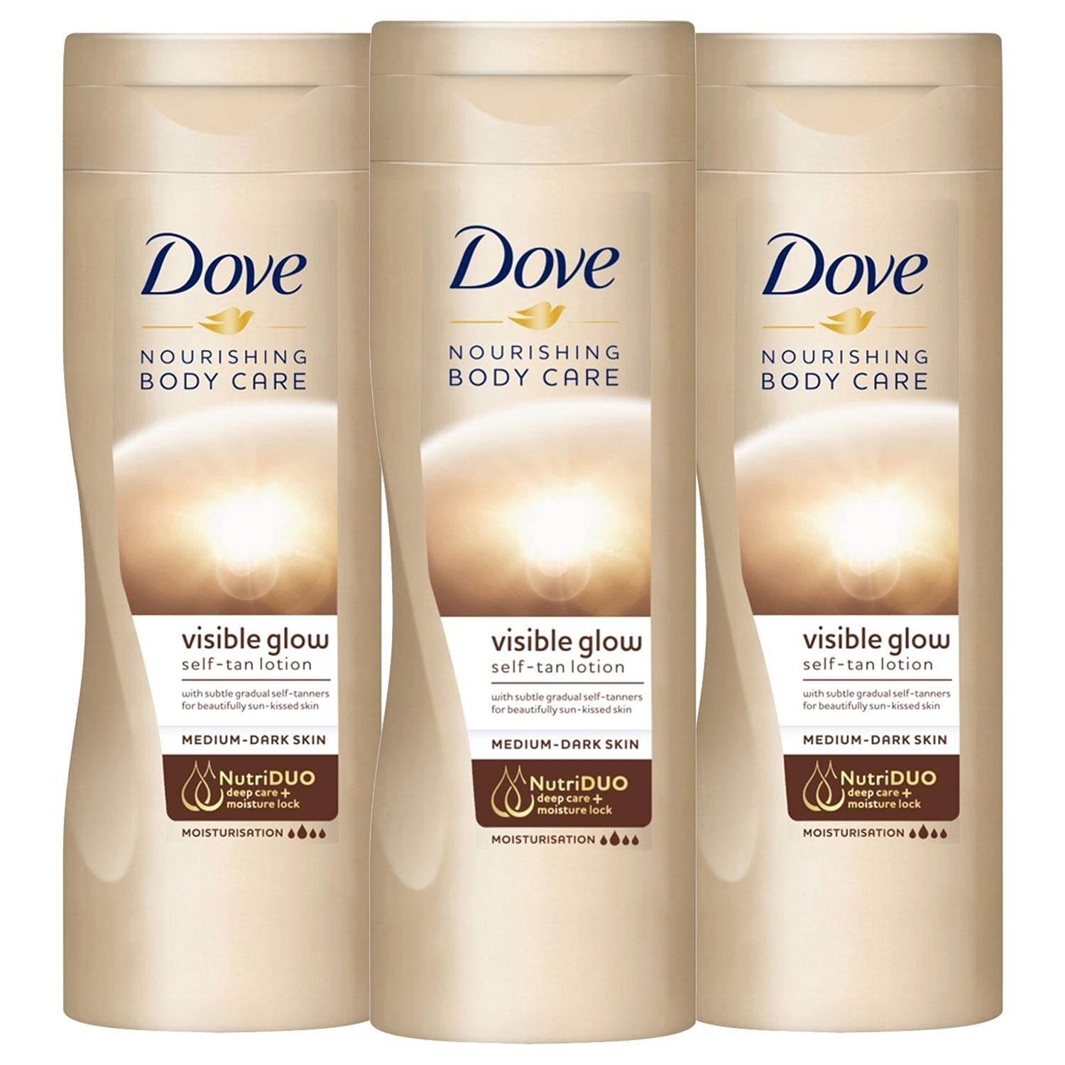 Dove Visible Glow Self-Tan Lotion Nourishing Care For Medium-Dark Skin, 3x400ml