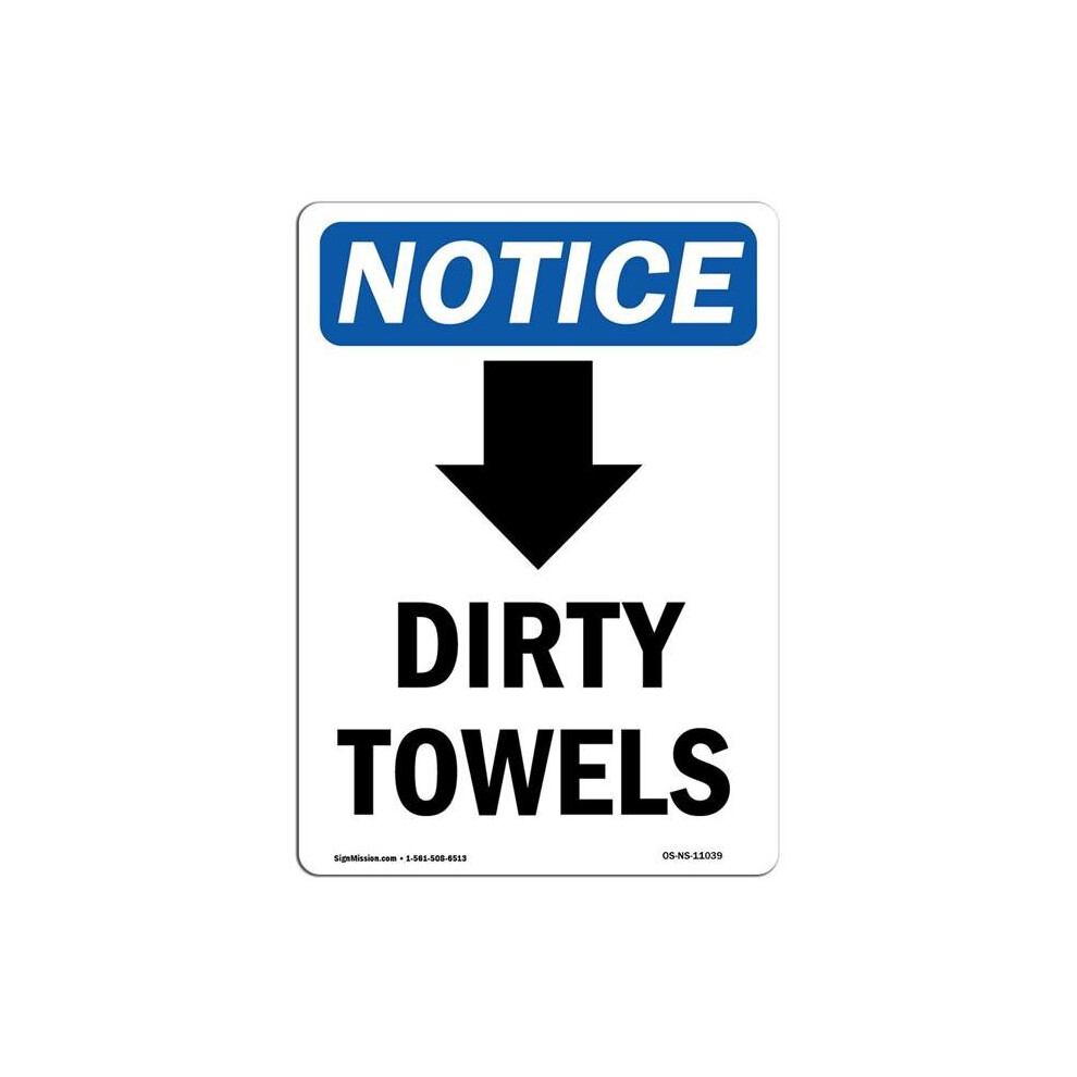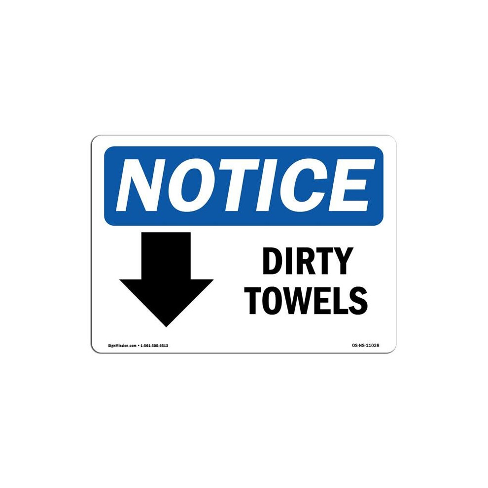 SignMission OS-NS-P-710-L-11038 OSHA Notice Sign - Dirty Towels-Down Arrow