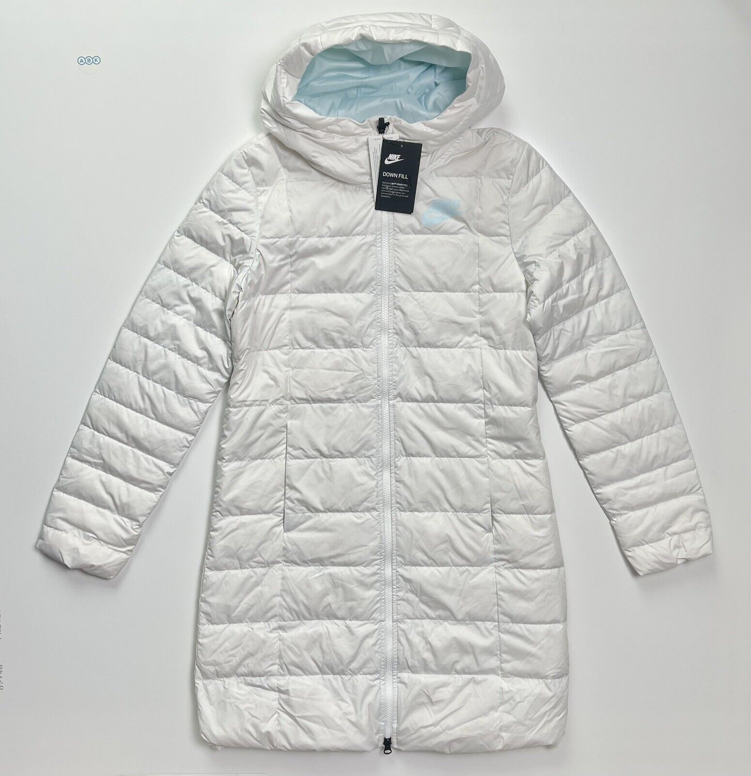 Women’s Nike Down Fill Hooded Parka Coat Jacket White Blue Size Small 854860-100