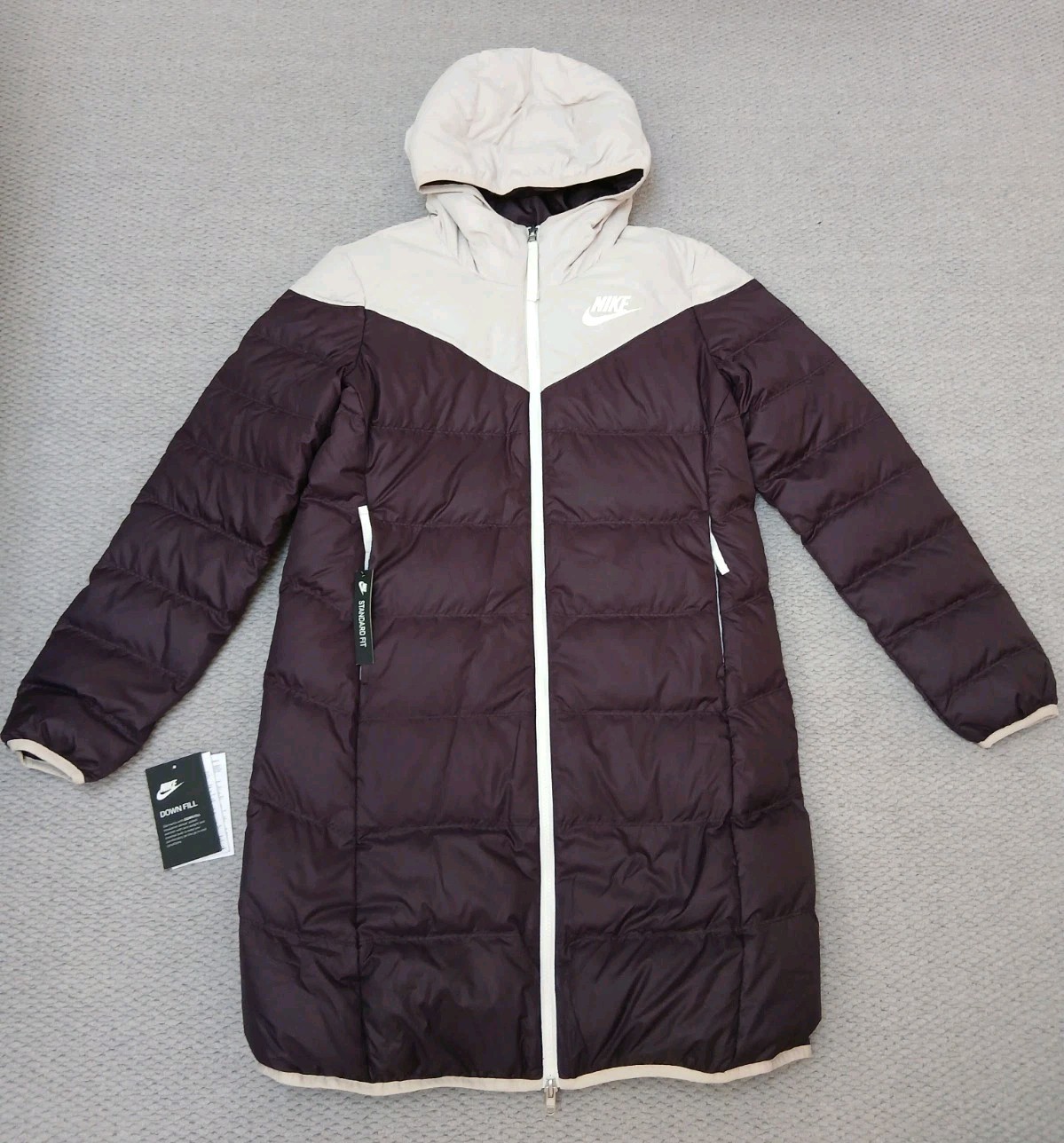 NIKE NSW DOWN FILL LONG COAT PARKA SIZE M (AO9993 030) PHANTOM / BEIGE