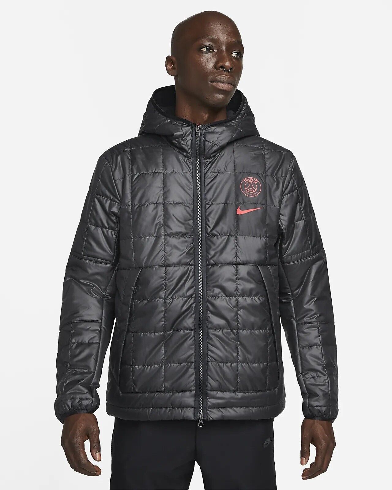 Nike PSG Paris Saint Germain Fleece Lined Down Quilted Hooded Coat Black Medium