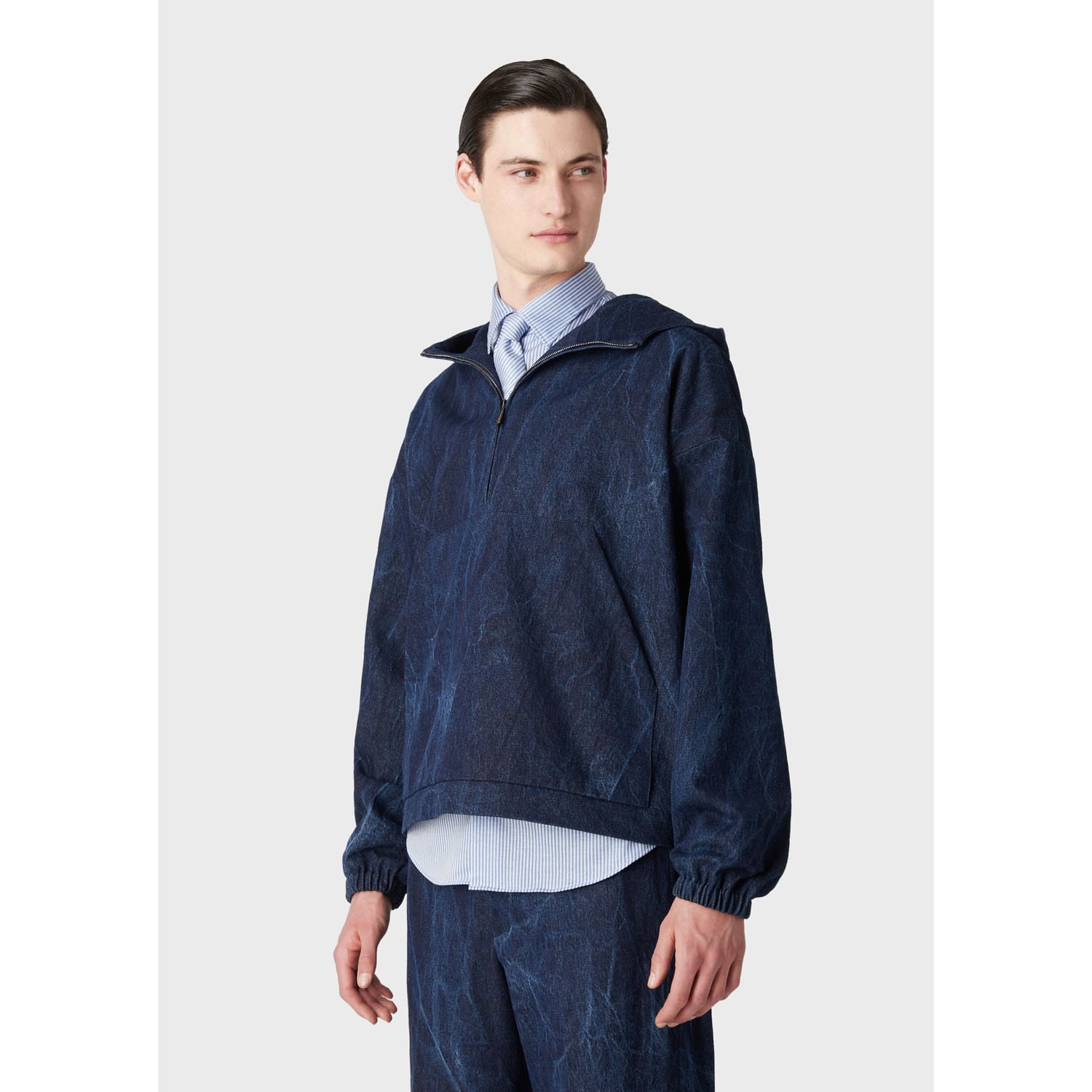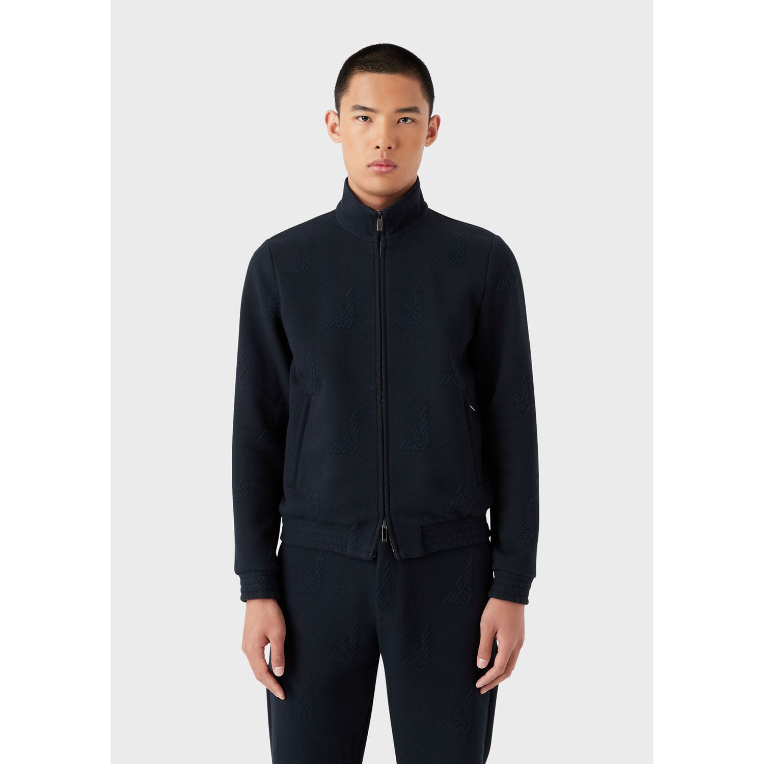 Emporio Armani Men's Textured Terry Jacket with Hood, Navy Blue, L