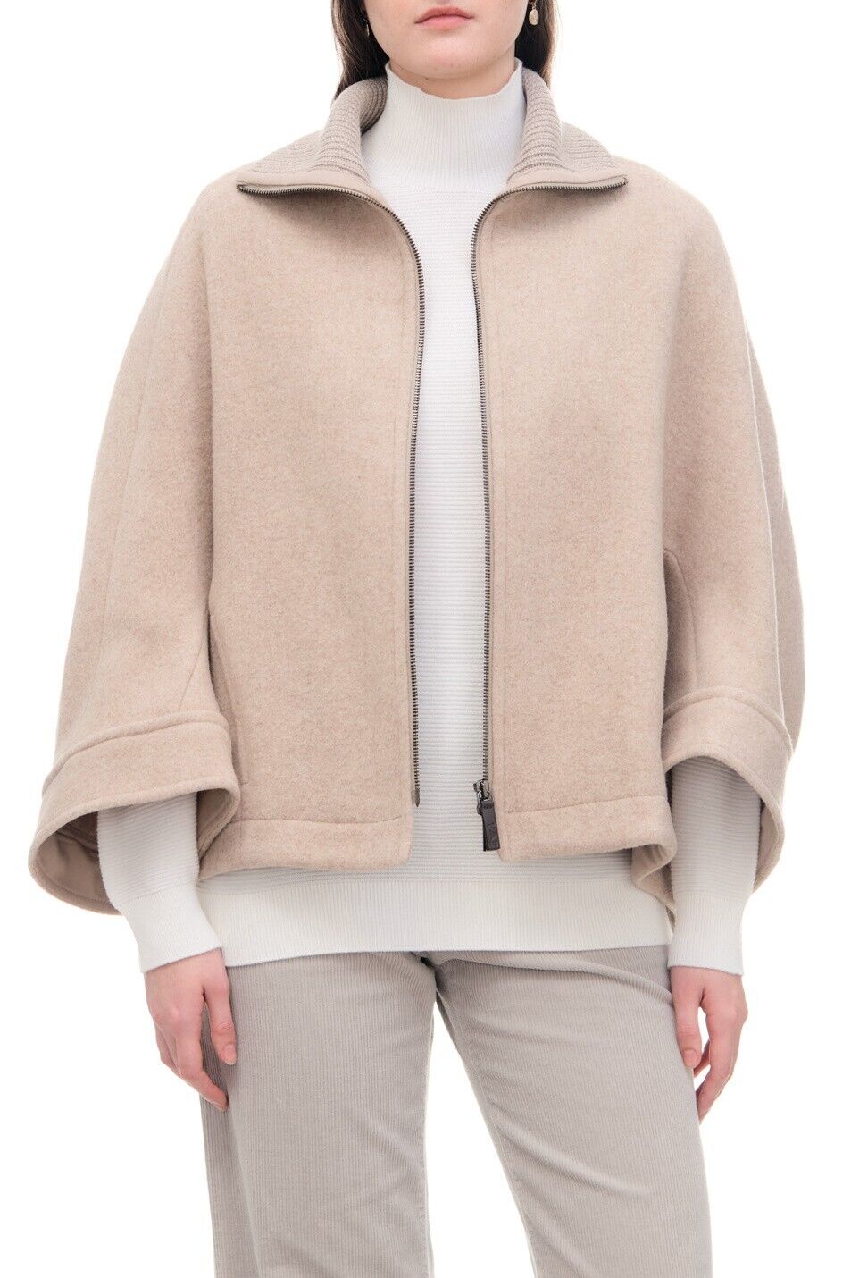Emporio Armani Womens Jacket Beige 46 Full Zip Wool Blend Relaxed Fit
