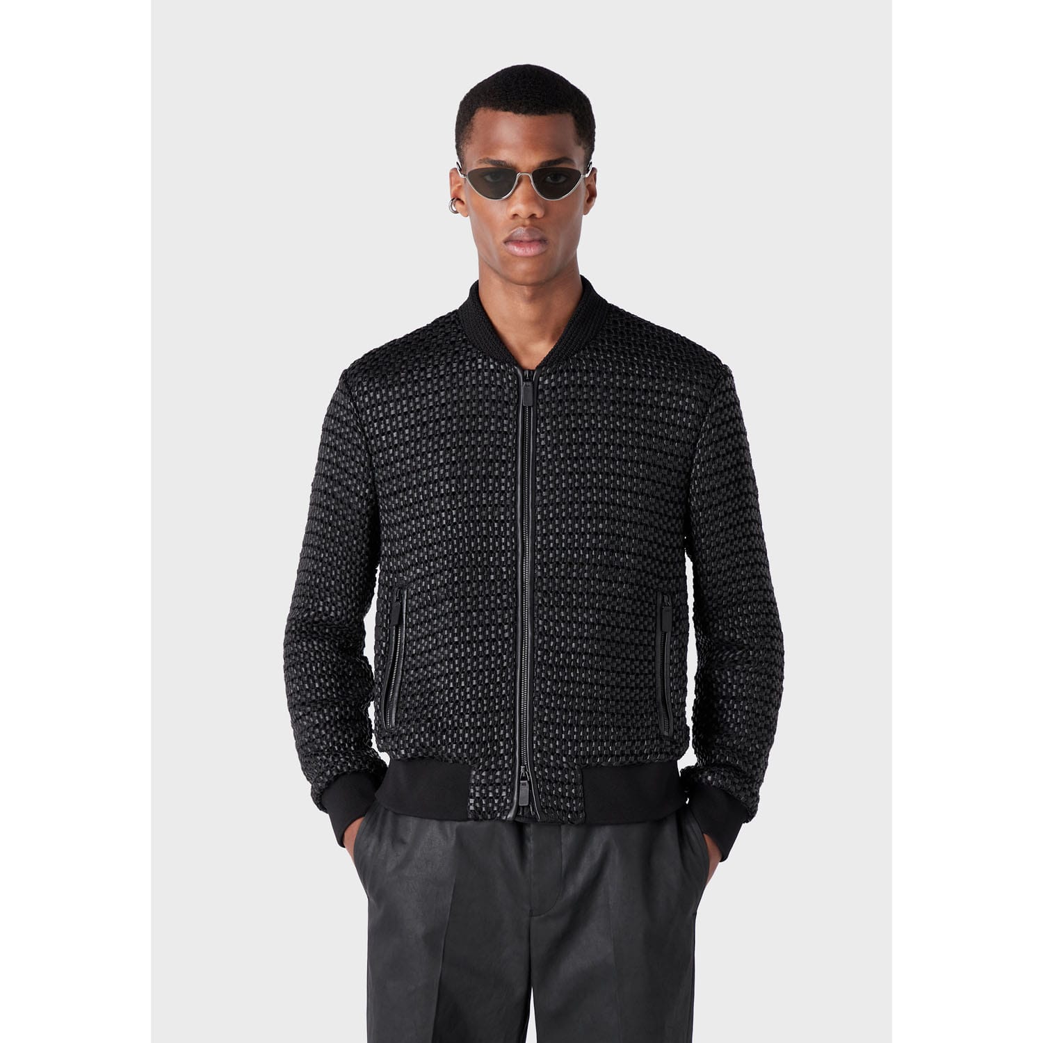 Emporio Armani Mens Bomber Jacket in Black Leather - Size X-Small