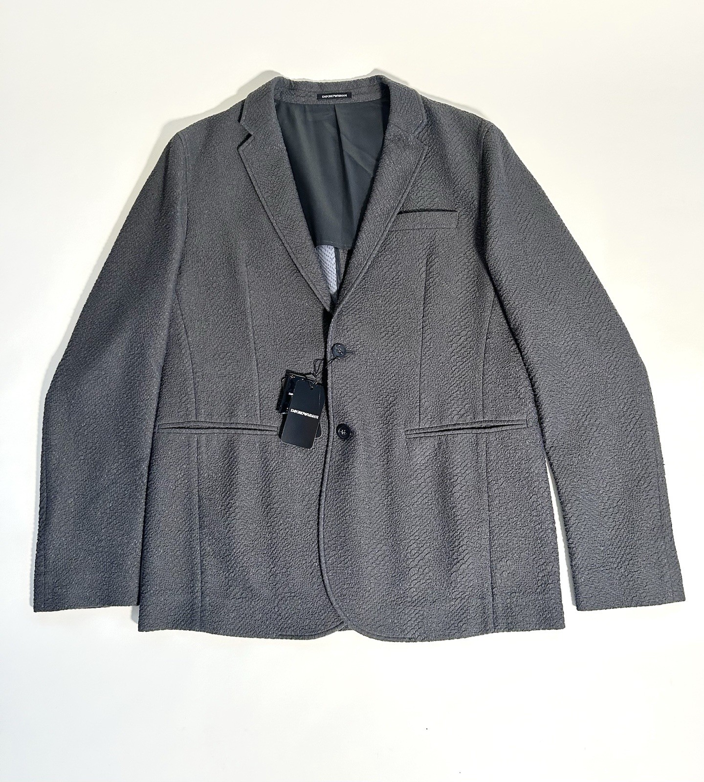 Emporio Armani Men’s Blazer Textured Dark Grey Size 52 Cotton Designer Jacket