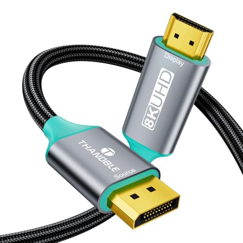 THANDBLE DisplayPort 1.4 to HDMI 2.1 Cable 6FT [8K@60Hz,4K@120Hz] Unidirectional Braided Display Port to HDMI 2.1 Cable, DP to HDMI Support HDR HDCP 2.3 for Monitor, Graphics Card, PC
