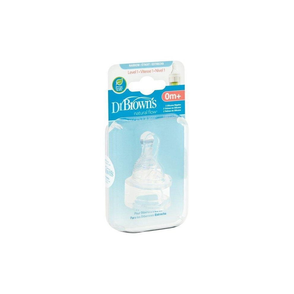 Dr Brown's Natural Flow Narrow Silicone Nipples, Level 1, 0m+, 2 count