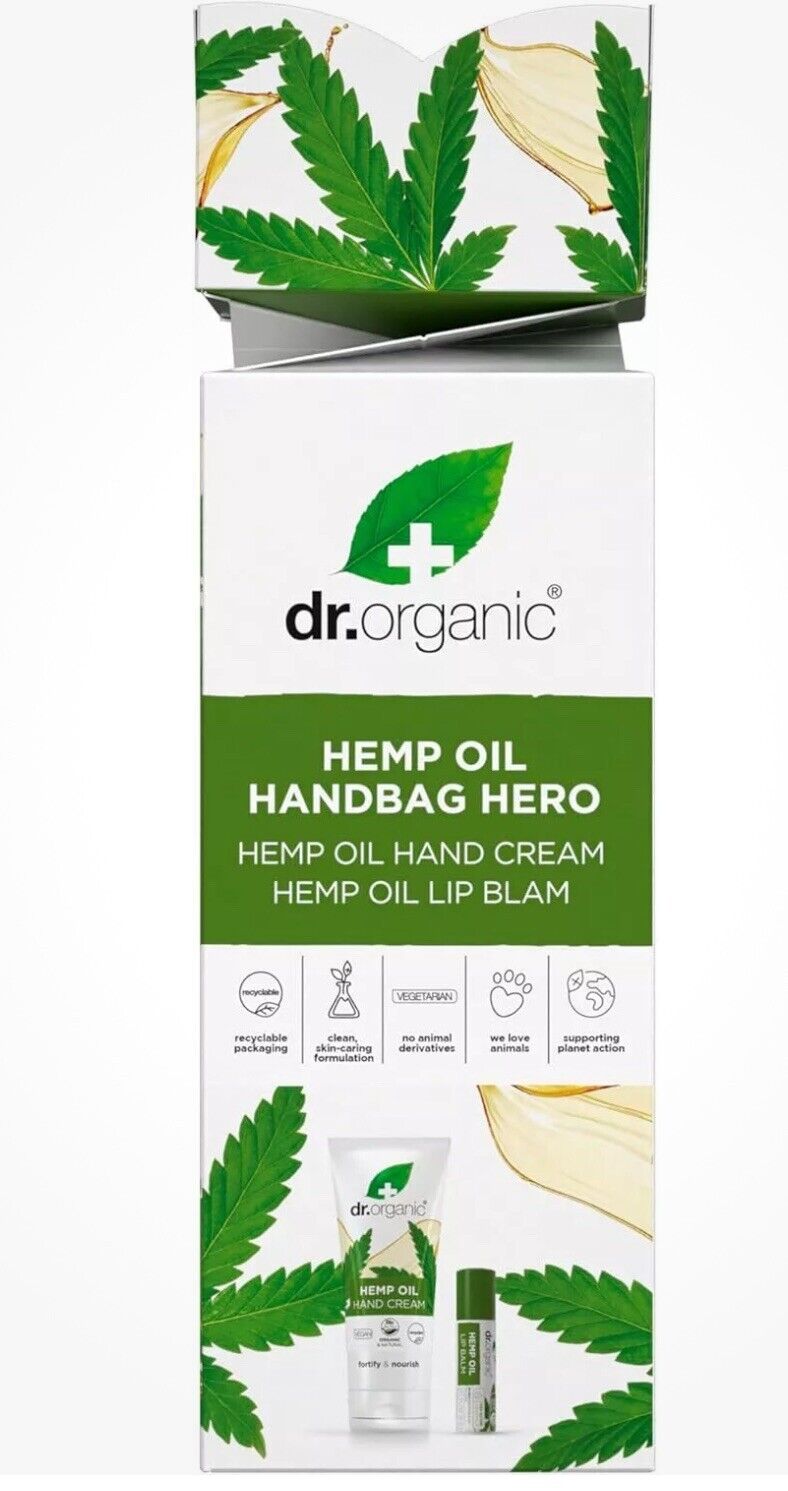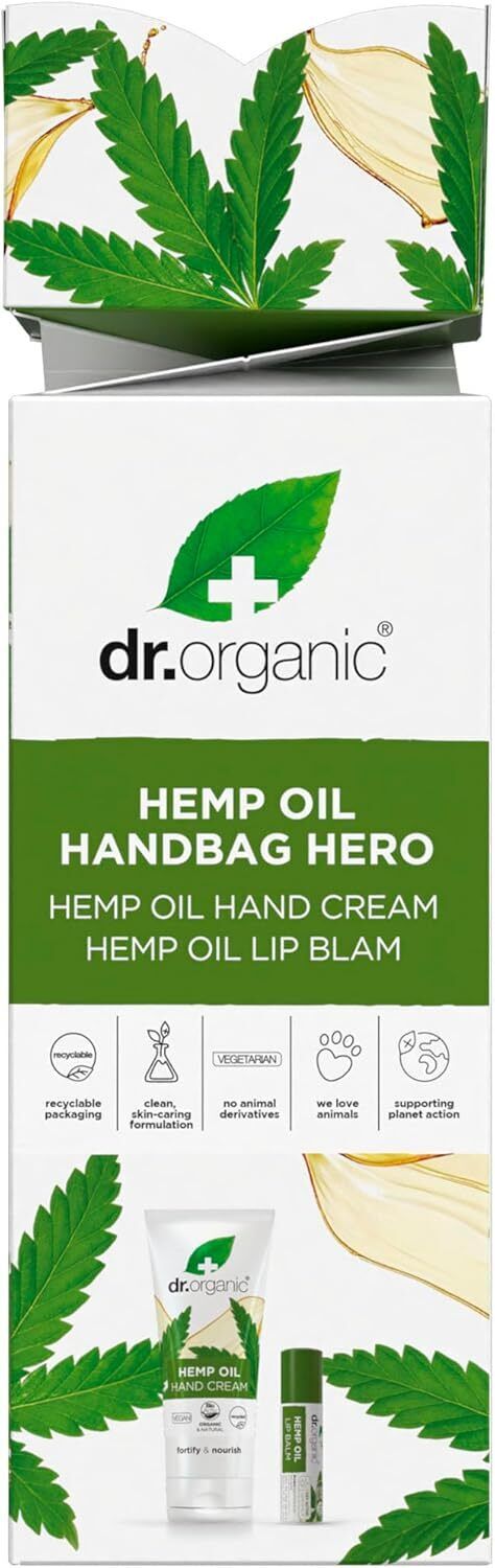 Dr Organic Hemp Oil Hand Bag Hero Gift Set, with Hand Cream & Lip Balm, Moisturising, Restoring, Natural, Vegan, Cruelty-Free, Paraben & SLS-Free, Recycled & Recyclable, Organic