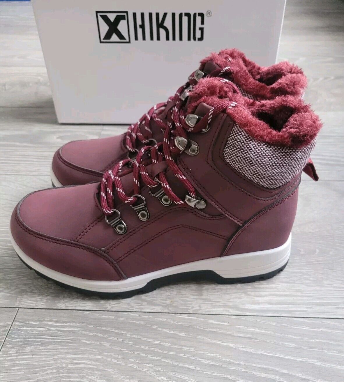 Heather Hiking Boots In Burgundy By Dr Keller Fur Lined Winter Shoes Size UK 4