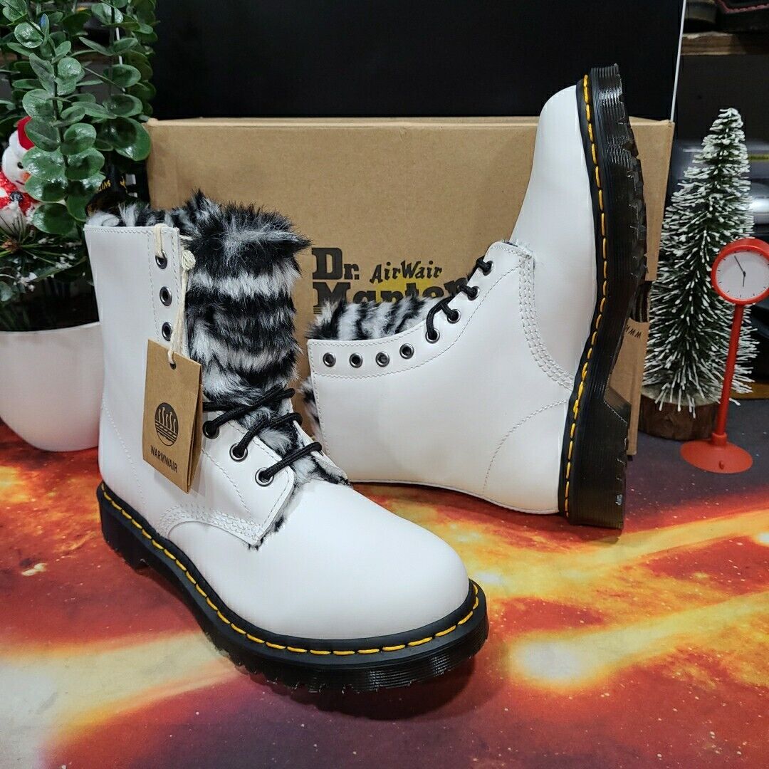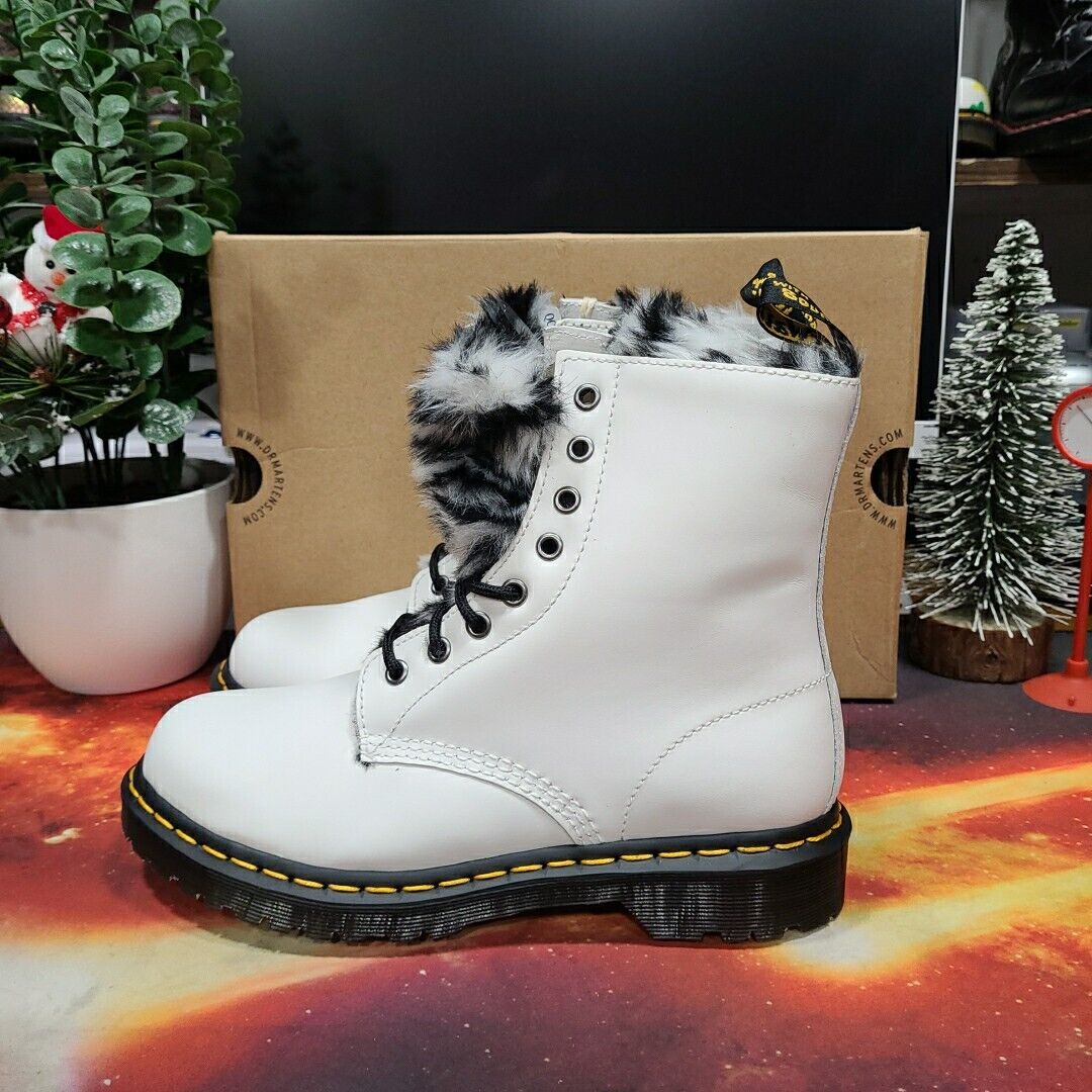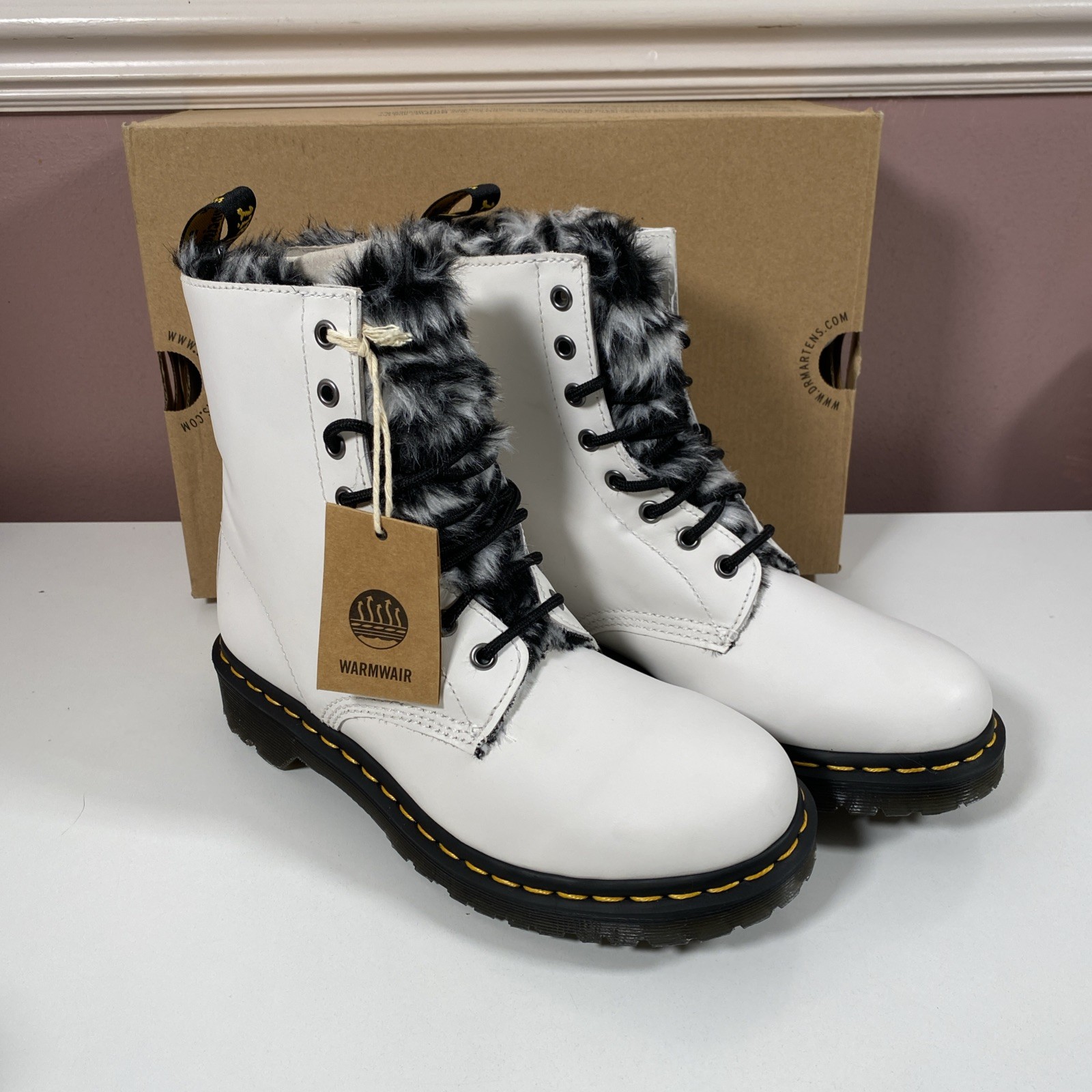 NEW IN BOX!! Dr Martens 1460 White Serena Fur Lined Boots Size UK 7