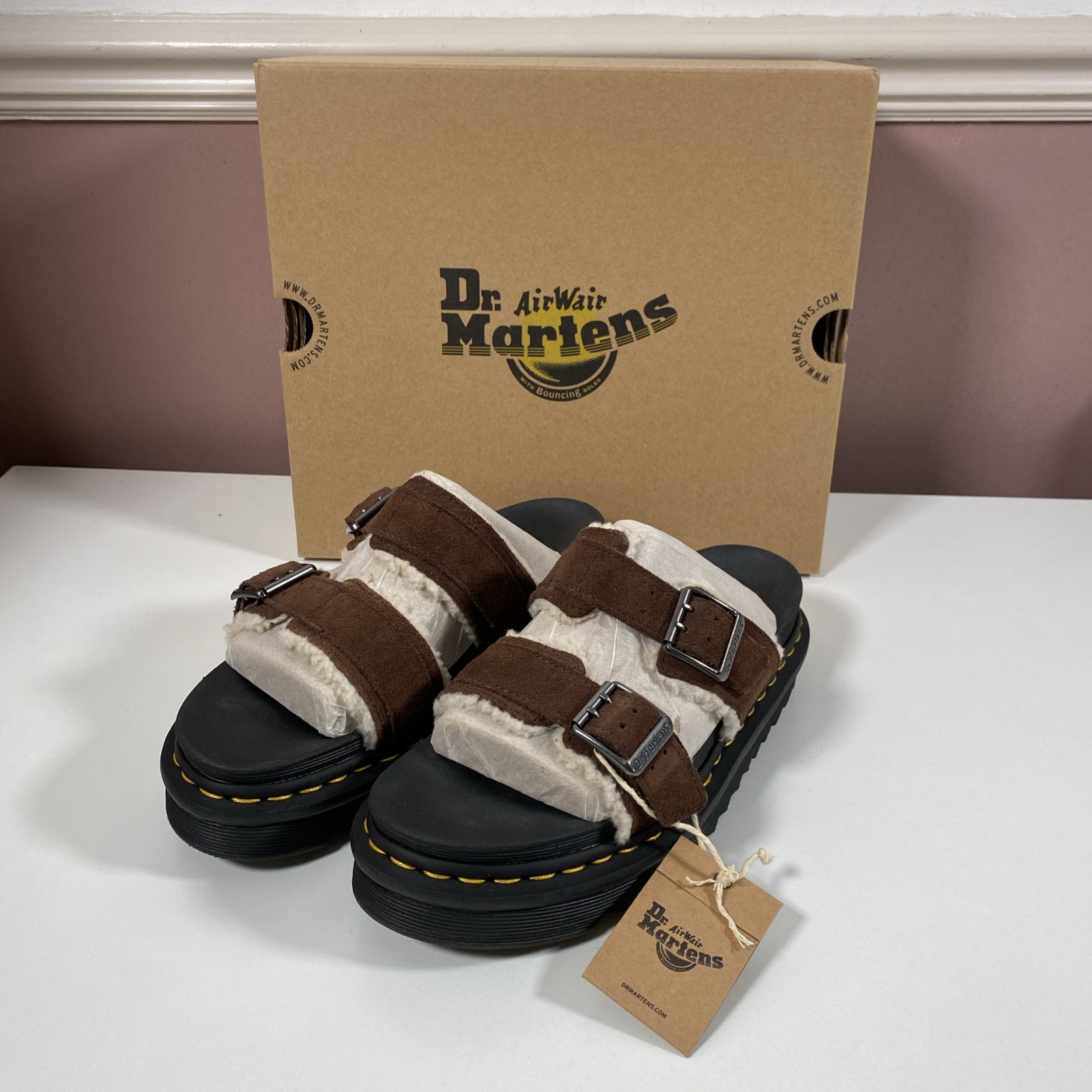 Dr Martens Myles Sandals Sliders Platform Suede Fur Lined UK 6.5 Adjustable