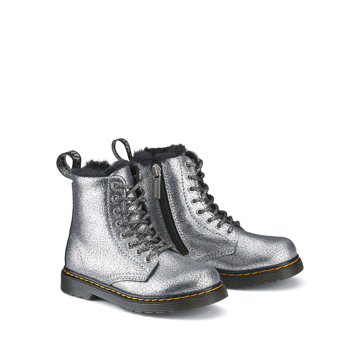Kids 1460 Ankle Boots in Foil Leather with Faux Fur Lining