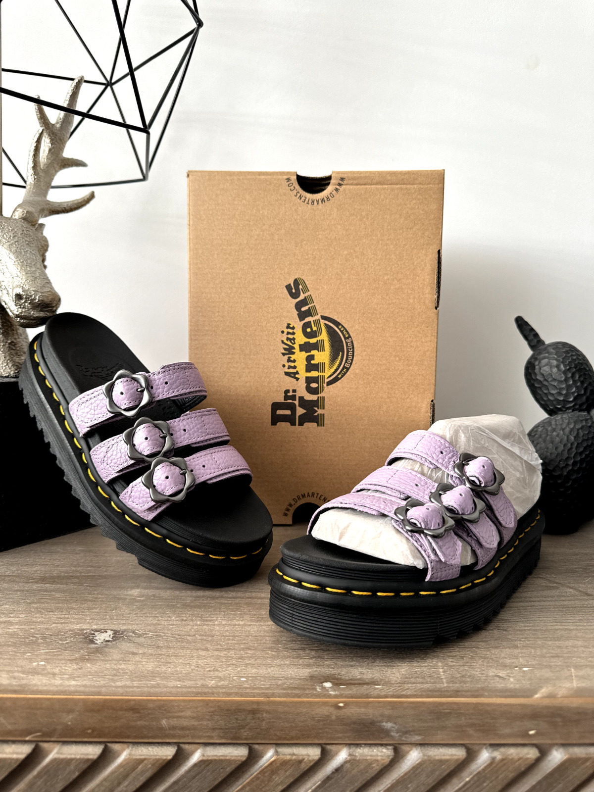 Dr MARTENS BLAIRE SLIDE SANDALS Flower Lilac Floral Leather UK 4 EU 37 US 6