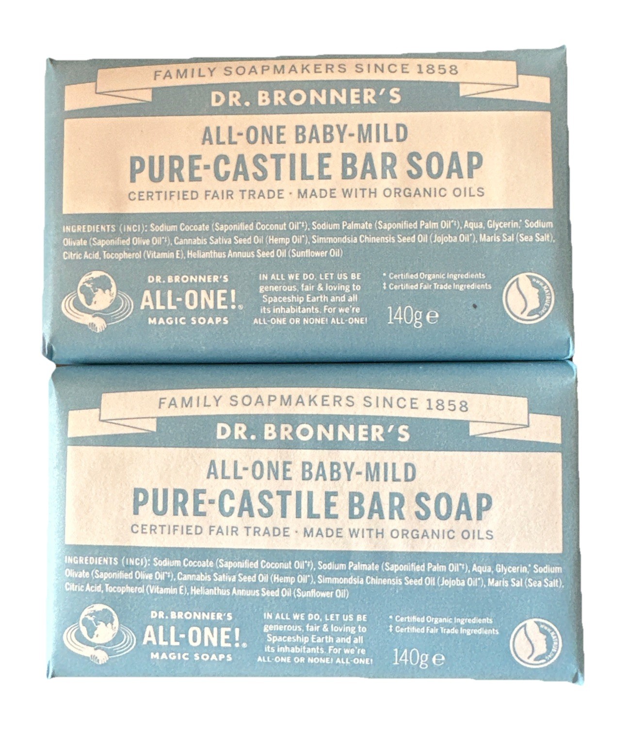 Dr Bronner Organic Aloe Vera Baby Mild Soap Bar 140g - 2 Pack
