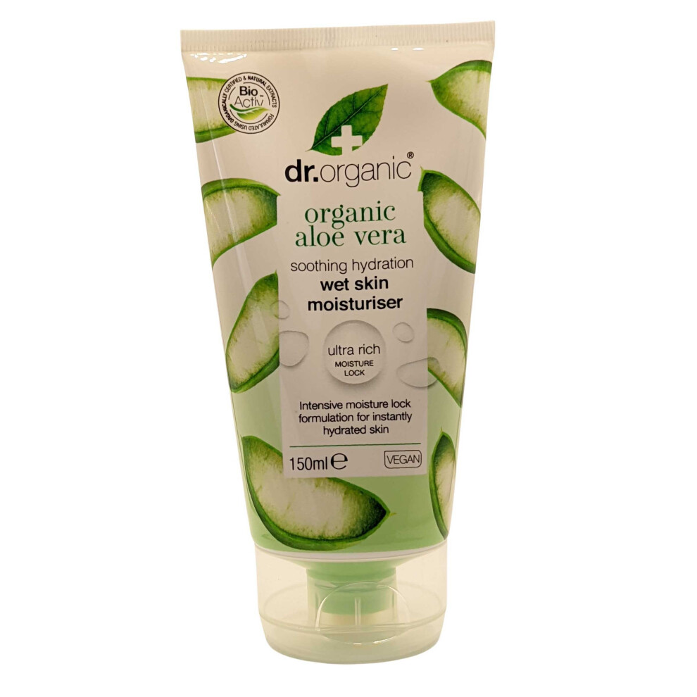 Dr Organic Wet Skin Moisturiser Ultra Rich 150ml Organic Aloe Vera use after Shower