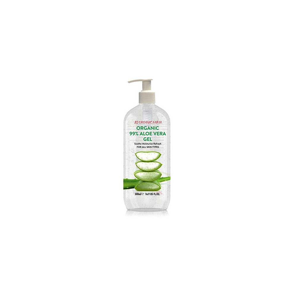 Organic Aloe Vera Gel Clear 99% Pure for all skin types, Moisturizer, Rich in Vitamins, Vegan, Large 500ml pump bottle, Premium quality, Made in UK