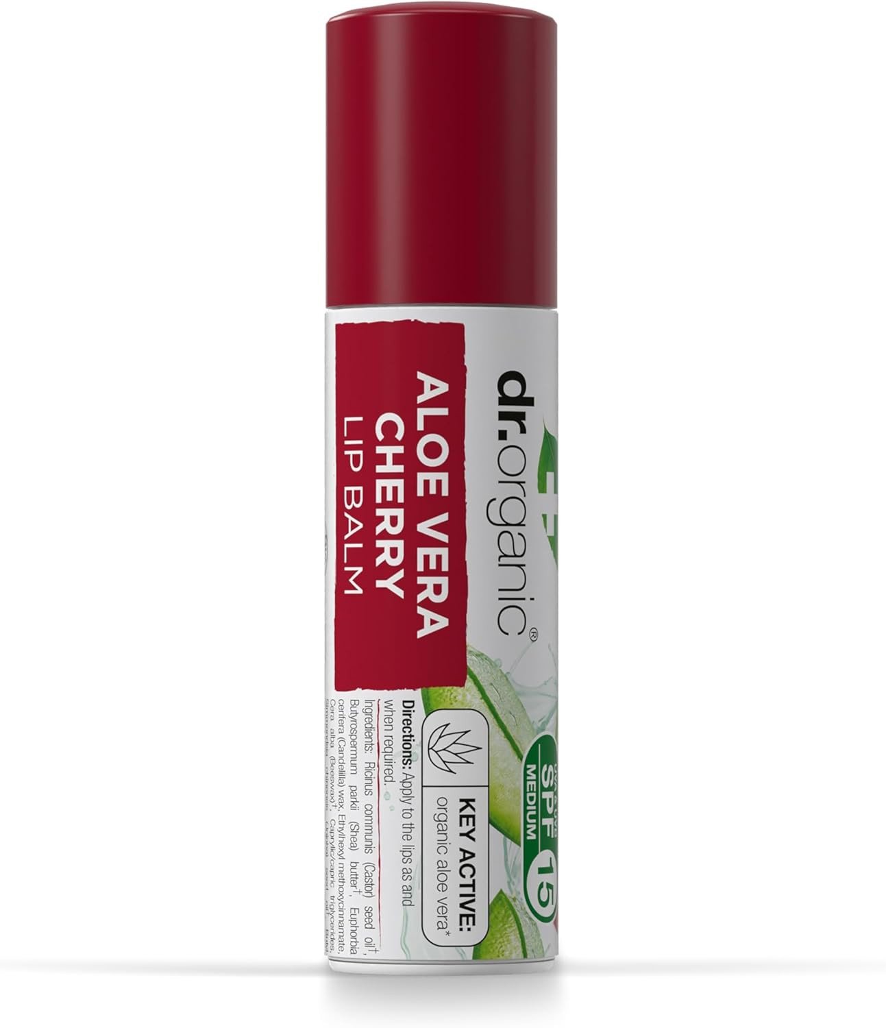 Dr Organic Aloe Vera & Cherry Lip Balm, Moisturising, SPF 15, Mens, Womens, Natu