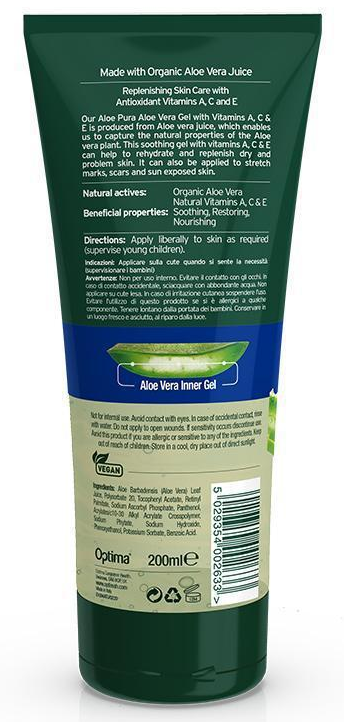 Aloe Pura Organic Vera Gel, Natural, Vegan, Cruelty 200 ml (Pack of 1)