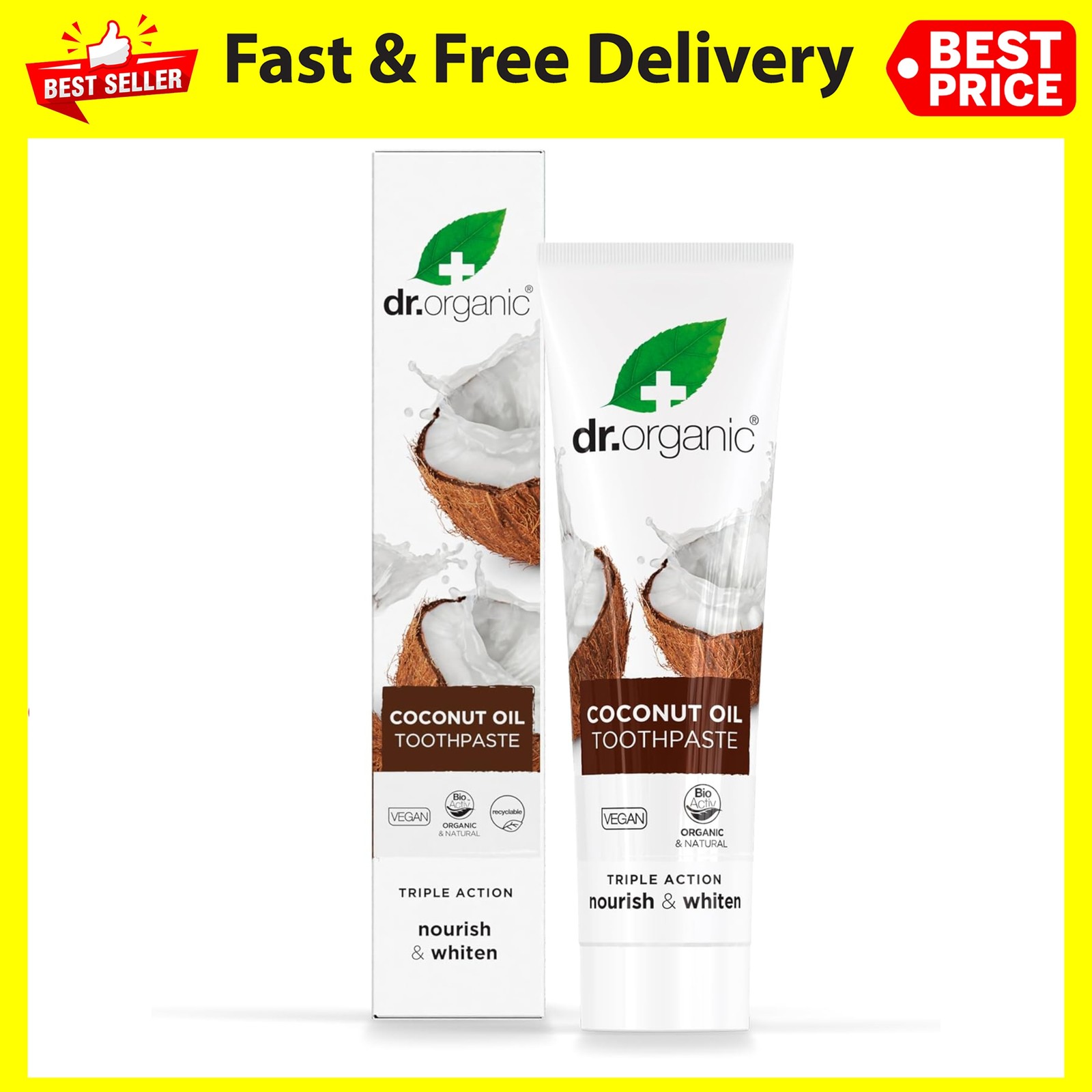 Dr Organic Coconut Oil Toothpaste, Whitening, Natural, Mens, Womens, Natural, Vegan, Cruelty-Free, Paraben & SLS-Free, Organic, 100ml,