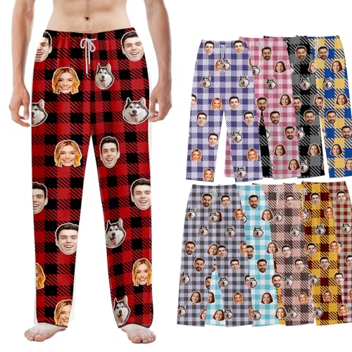Personalised Pyjama Bottoms with Photo, Custom Face Sleep Pants for Men & Women – Funny Plaid Lounge Bottoms Gift for Friends, Couples, Pet Lovers