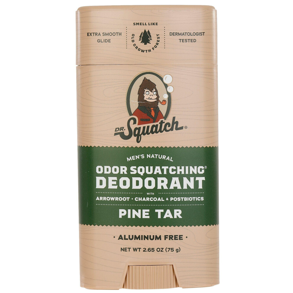 Dr. Squatch Natural Deodorant for Men - Odor-Squatching Men's Deodorant Aluminum Free - Pine Tar 2.65 oz (1 Pack)