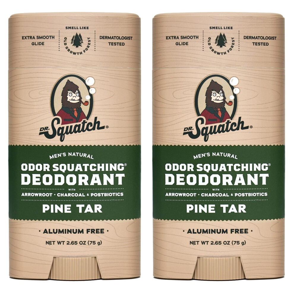 Dr. Squatch Natural Deodorant for Men 2 Pack Pine Tar ? Odor-Squatching Men's Deodorant Aluminum Free (2.65 oz, 2 Pack)