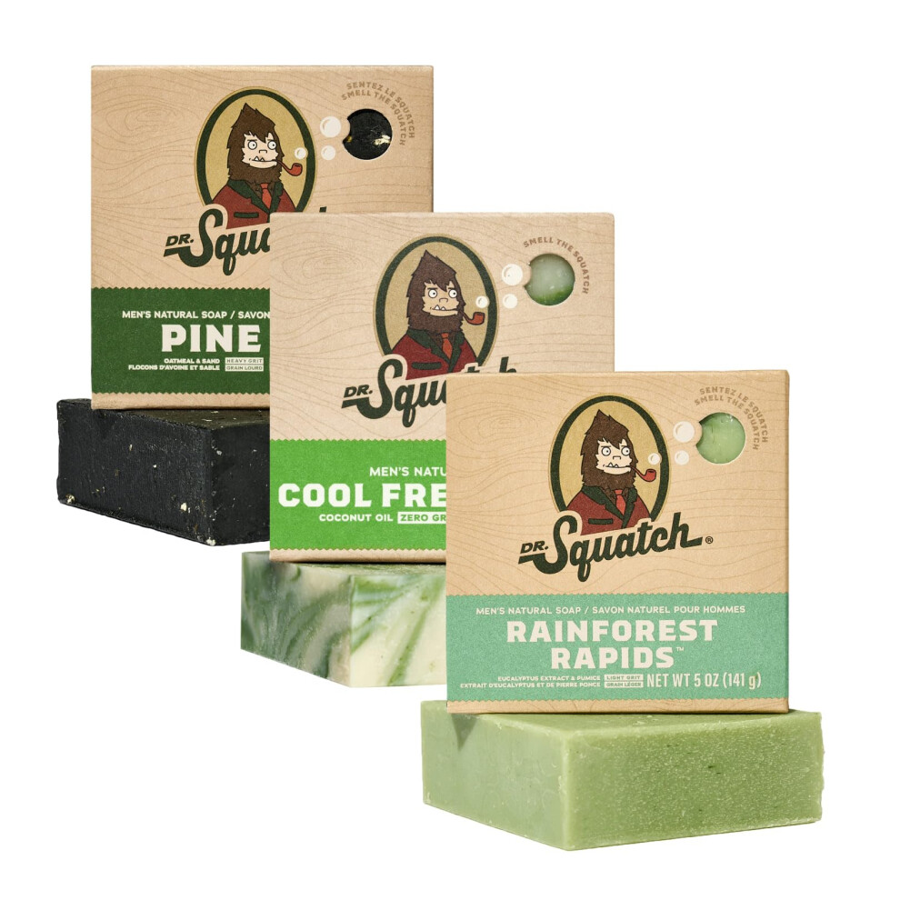 Dr. Squatch Men's Soap Sampler Pack (3 Bars) â Pine Tar, Cedar Citrus, Spearmint Basil Bars â Natural Manly Scented Organic Soap