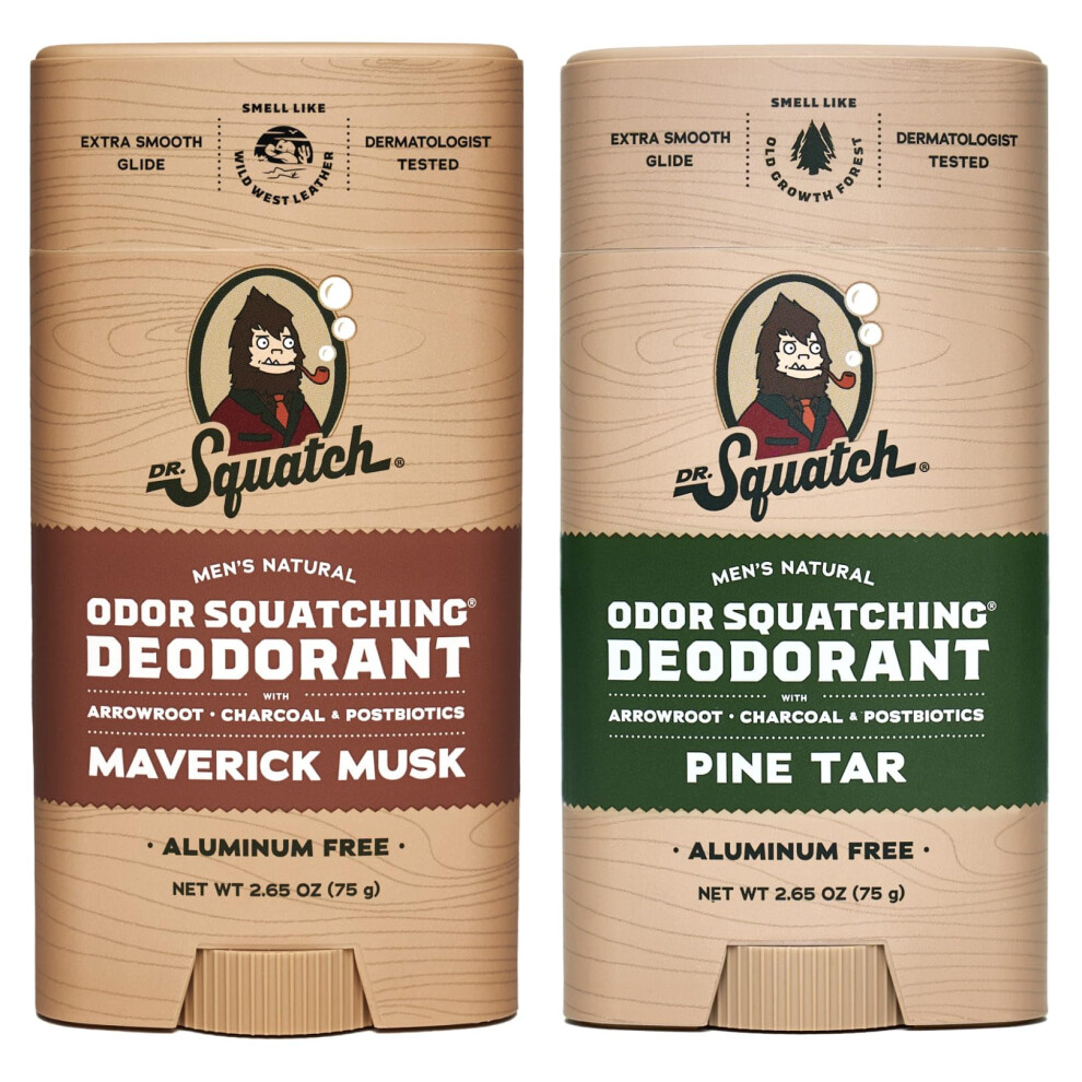 Dr. Squatch Natural Deodorant for Men - Odor-Squatching Men's Deodorant Aluminum Free - Maverick Musk + Pine Tar (2.65 oz 2 Pack)