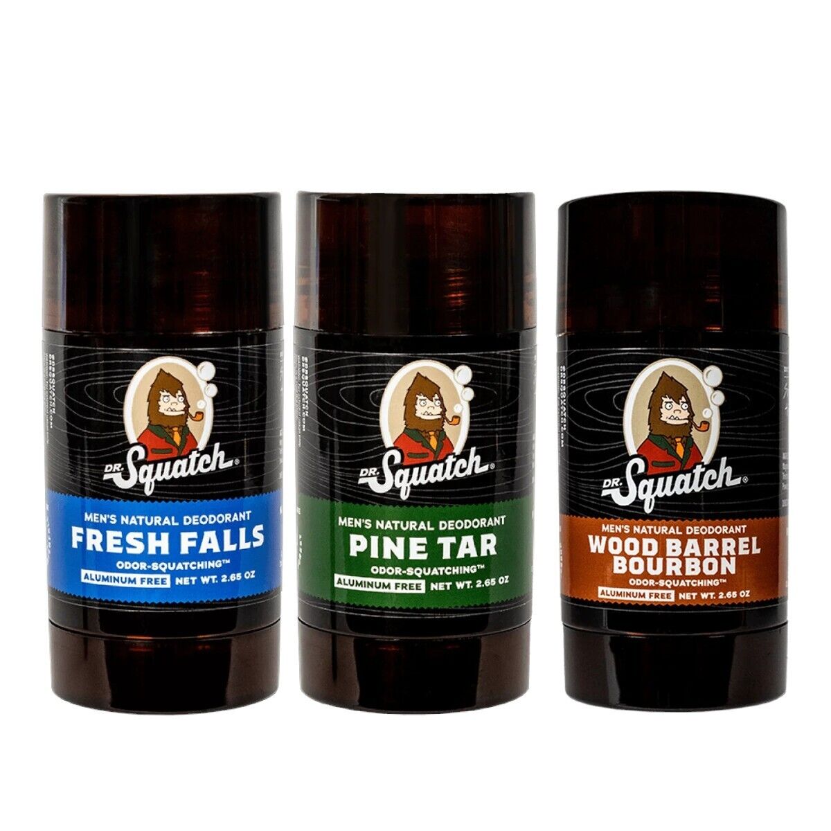 Dr Squatch Natural 3 pack Deodorant Wood Barrel Bourbon, Fresh Falls & Pine Tar