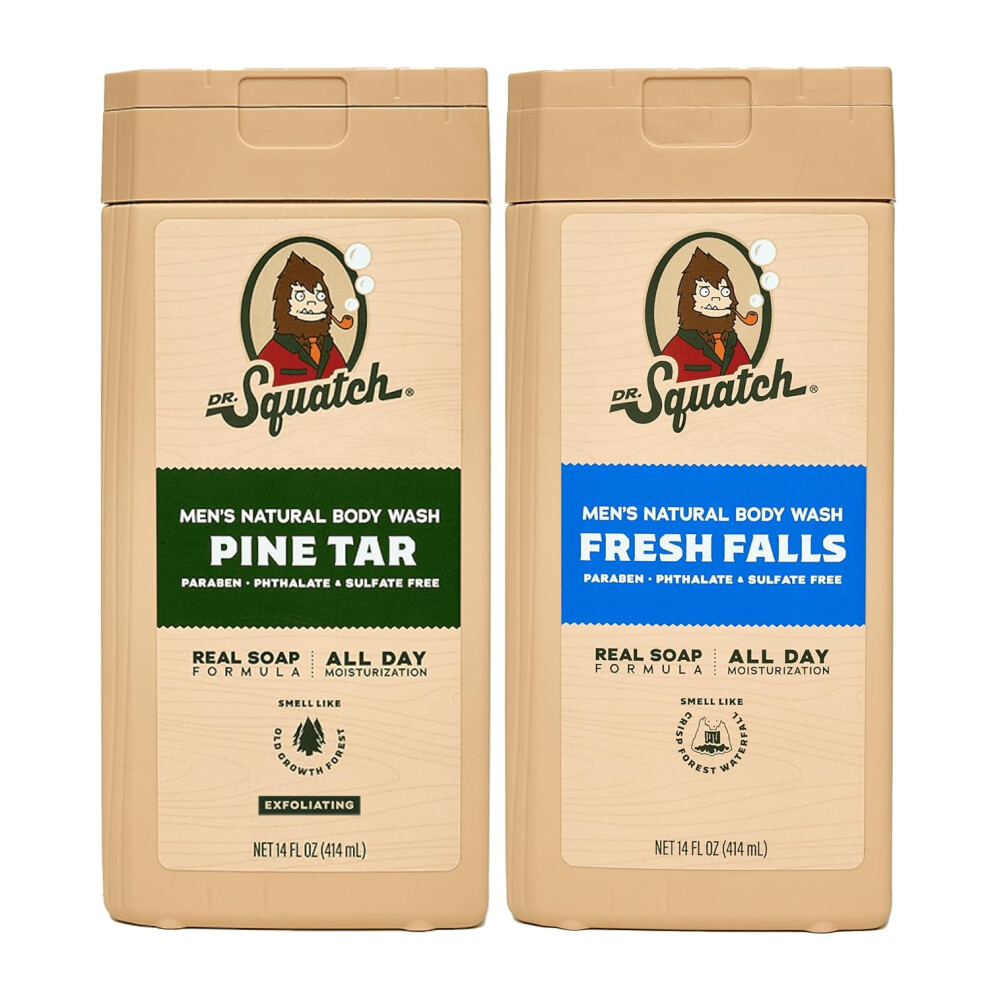Dr Squatch NEW Natural Body Wash for Men Exfoliating and NonExfoliating Pine Tar Fresh Falls 14 oz 2 Pack