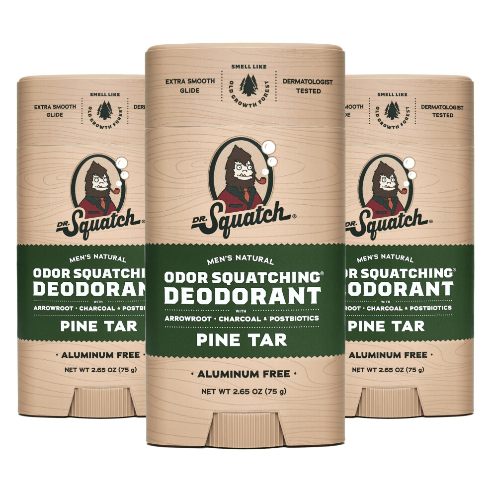 Dr. Squatch Natural Deodorant for Men 3 Pack Pine Tar - Odor-Squatching Men's Deodorant Aluminum Free (2.65 oz 3 Pack)