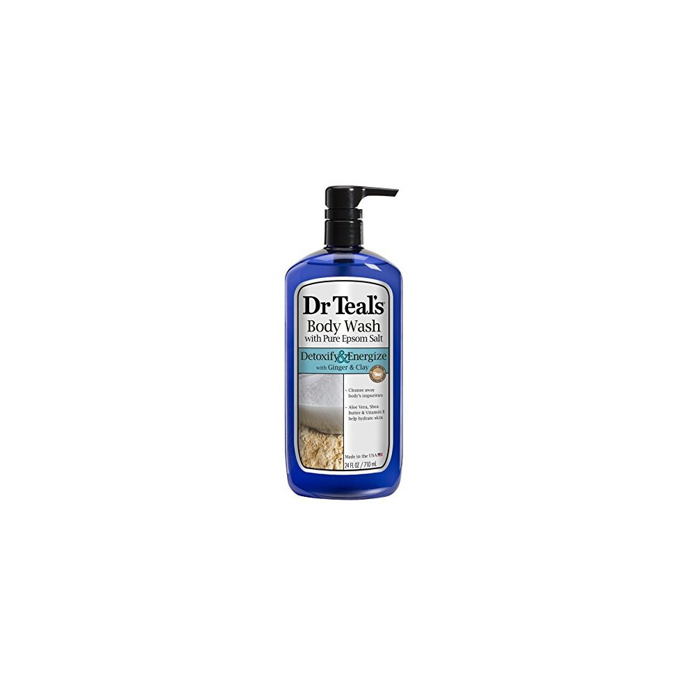 Dr Teal\'s Body Wash with Pure Epsom Salt, Detoxify & Energize with Ginger & Clay, 24 fl oz (Pack of 4)