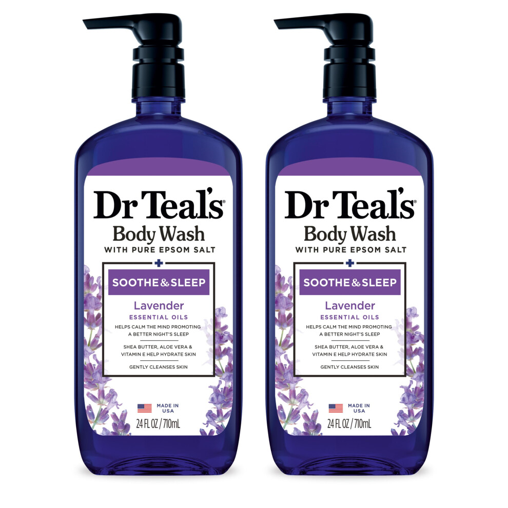 Dr Teal's Body Wash with Pure Epsom Salt Soothe & Sleep with Lavender 24 fl oz (Pack of 2) (Packaging May Vary)