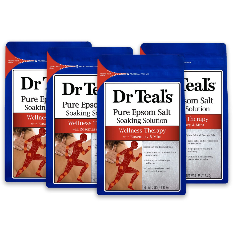 Dr Teal's Pure Epsom Salt Soak Wellness Therapy with Rosemary & Mint 3 lbs (Pack of 4)