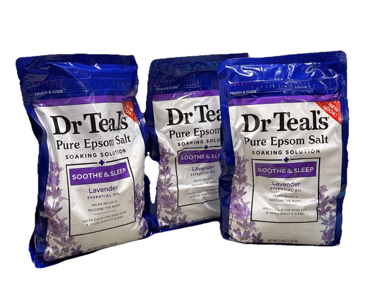 3x Dr Teal's Epsom Salt Sooth and Sleep &Lavender Soaking Salt Solution 1.36kg