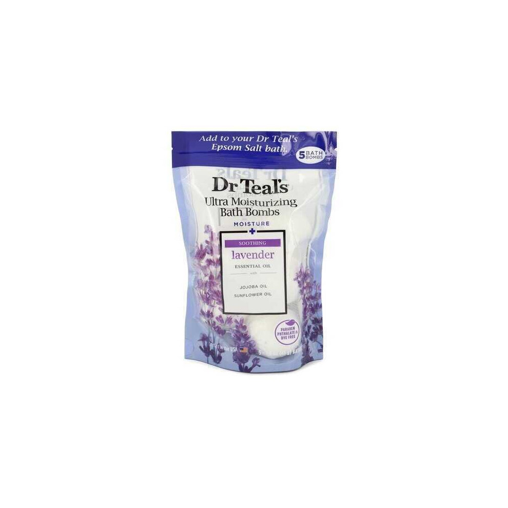 Dr Teal's Ultra Moisturizing Bath Bombs Five (5) Moisture Soothing Bath Bombs with Lavender, Essential Oils, Jojoba Oil,