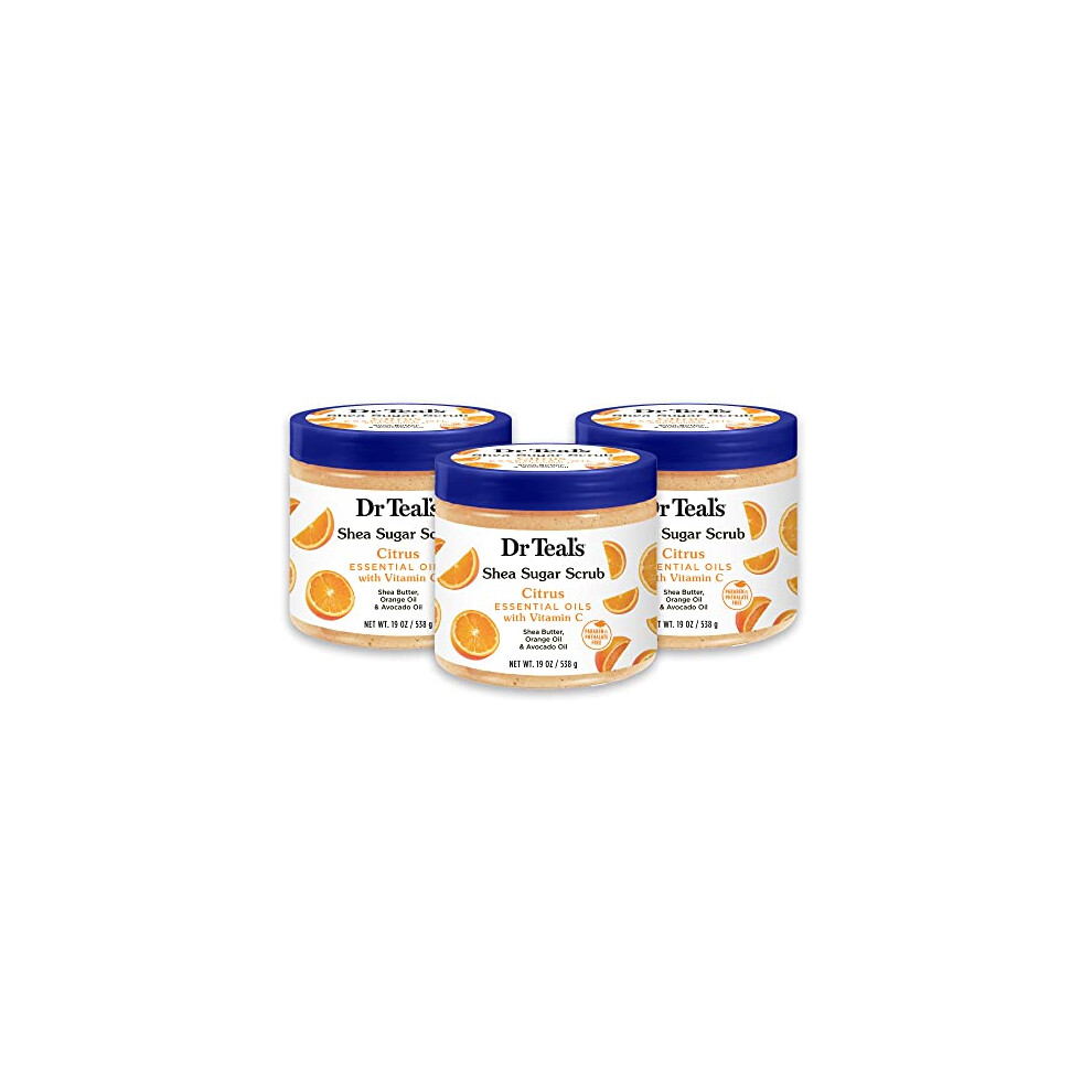Dr Teal\'s Shea Sugar Body Scrub, Citrus with Essential Oils & Vitamin C, 19 oz (Pack of 3)