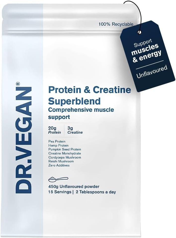 DR VEGAN® Protein & Creatine Superblend | Plant Based Protein Powder, Unflavou