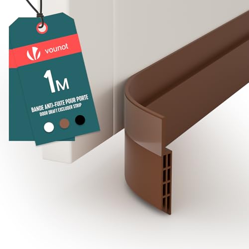 VOUNOT® Door Draught Excluder Strip, Draft Excluder Under Door for Energy Saving, Soundproof, Weatherproof, Dust Reduction Door Seal for Home, Entrance, 100x5cm, Brown