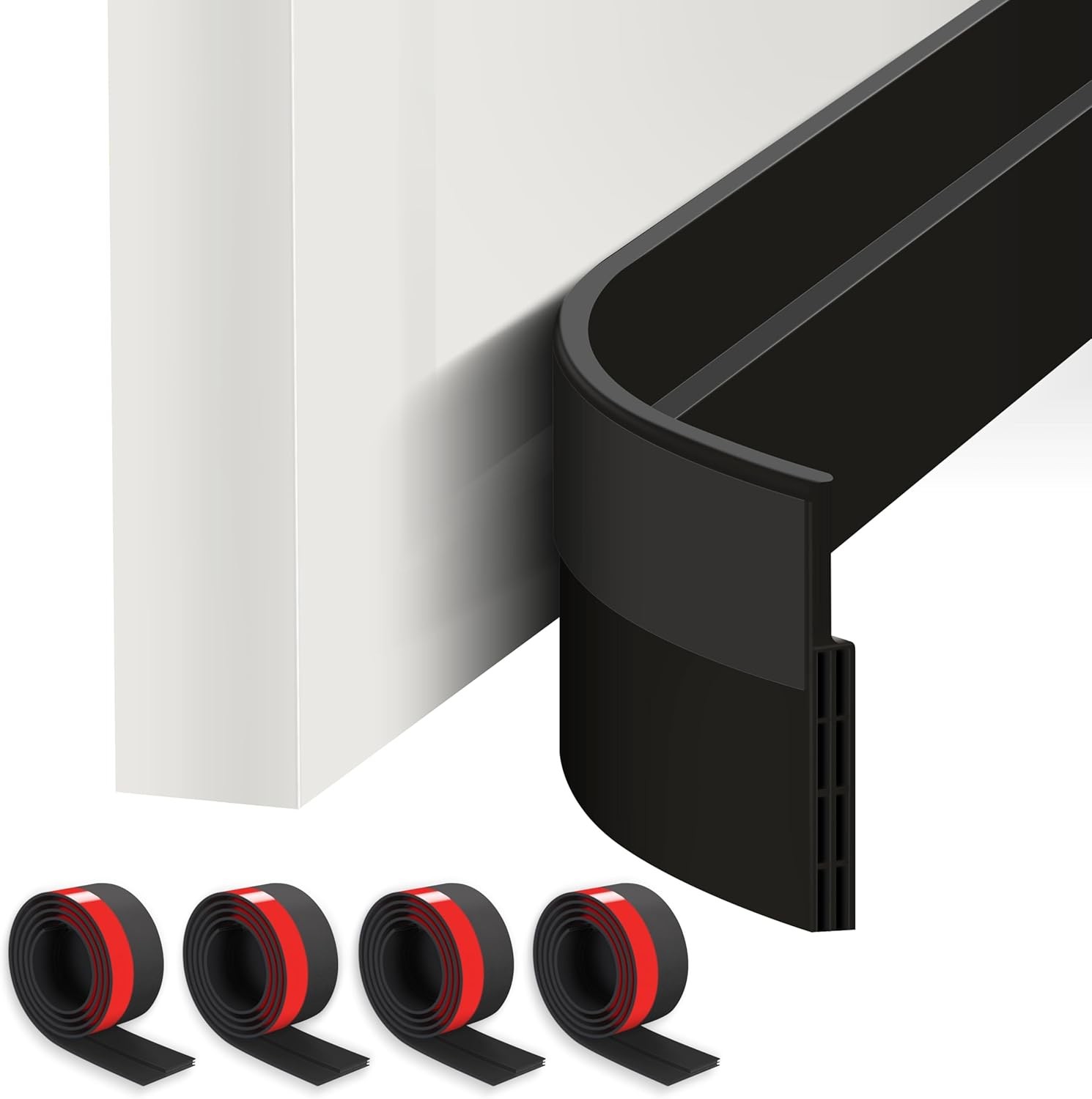 ETERCYCLE 4 Pack Draft Excluder for Doors, Under Door Sweep for Exterior & Interior Doors, Adjustable Door Draft Excluder Soundproof Weather Proof Draught Excluder for Doors (White+Black)