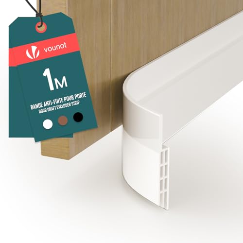 VOUNOT® Door Draught Excluder Strip, Draft Excluder Under Door for Energy Saving, Soundproof, Weatherproof, Dust Reduction Door Seal for Home, Entrance, 100x5cm, White