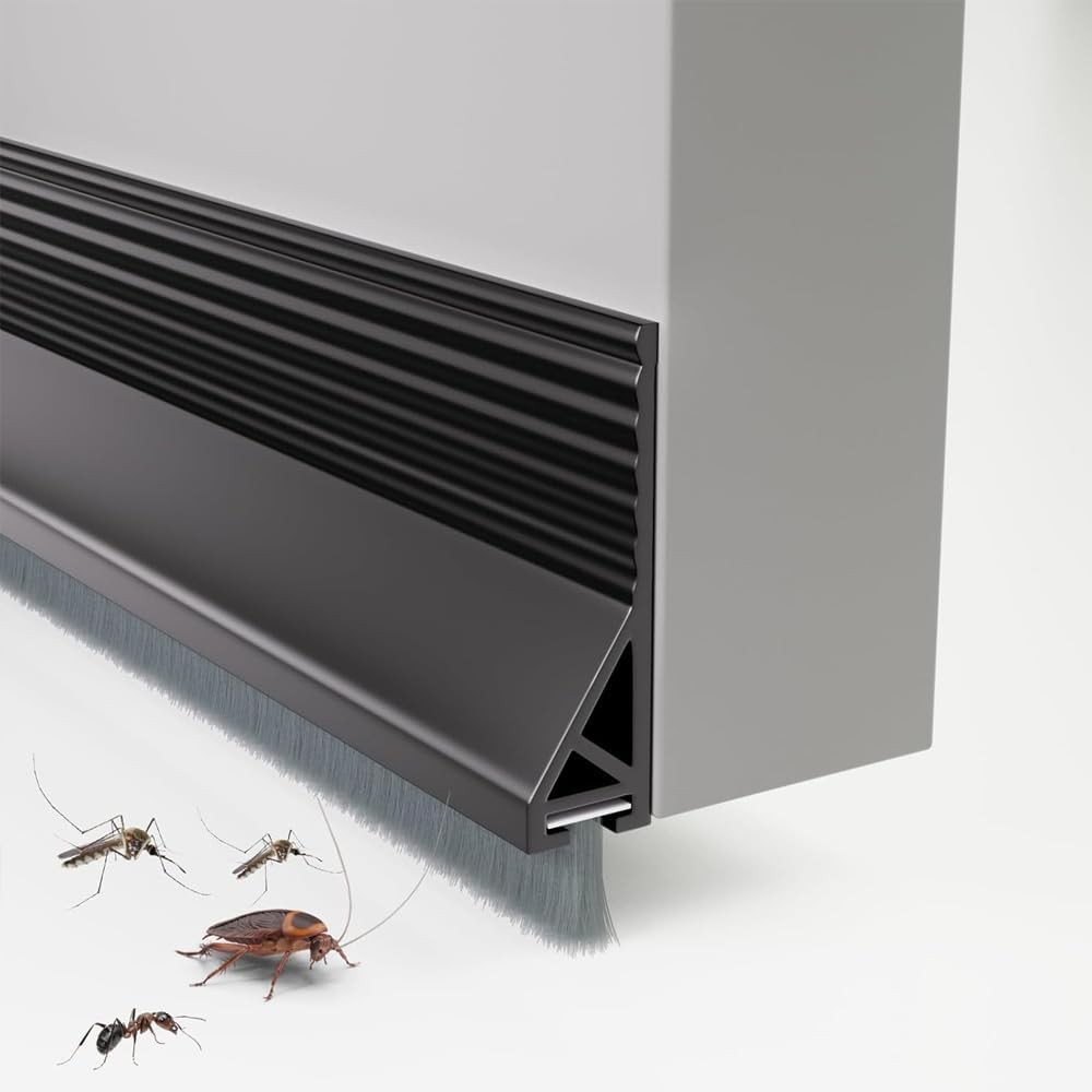 Brush Draft Excluder for External Doors,Door Draught Excluder Brush Strip Bar,Self-Adhesive Doors Seal Stripping,Soundproof Cuttable Door Bottom Seal(Black,1pcs)