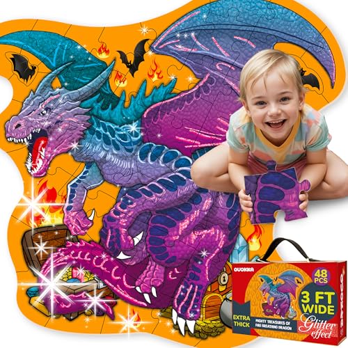 QUOKKA Large Puzzle for 3-4 Year Olds - 60х90 cm 48 pc Shaped Giant Floor Puzzles - Jigsaws For Children age 4 5 - Dragon Toys For 4 5 6 yo - Gifts Game For Boys and Girls