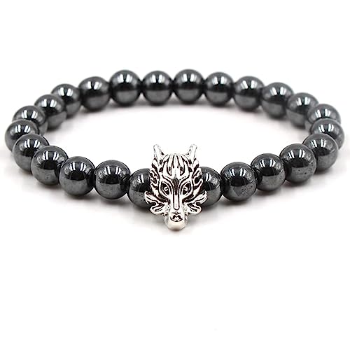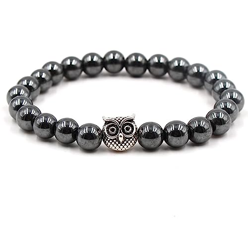 YRYRYW Schmuck Bracelet 8 mm Natural Stone with Pendant Helmet Dragon Owl for Him and Her, Stretch Bangle for Men and Women - 19 cm Household faucets