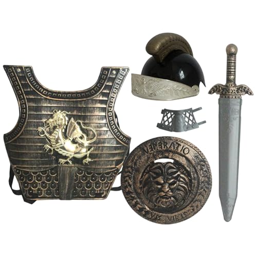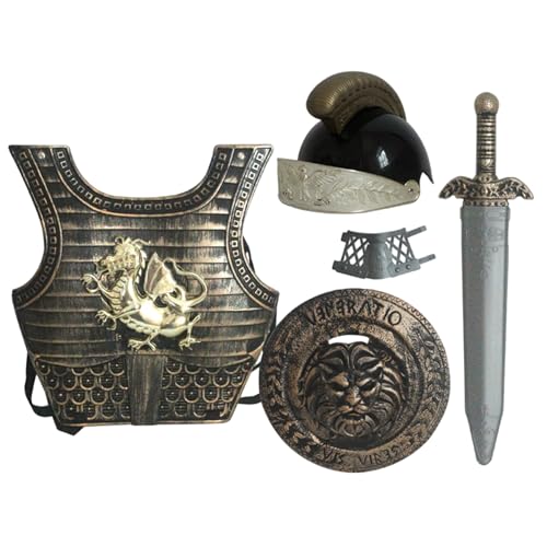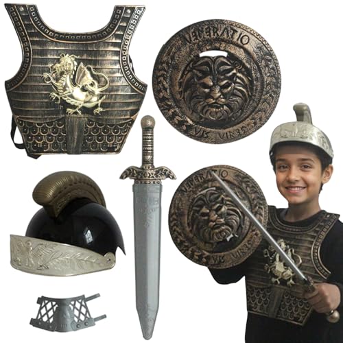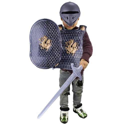 Obelunrp Knight Costume Kids 5Pcs/Set Dragon Pattern Medieval Knight Armor Includes Helmet, Shield, Sword, Wrist Guards and Armor for Halloween Cosplay Role Play, Costume Kids, Christmas Decor