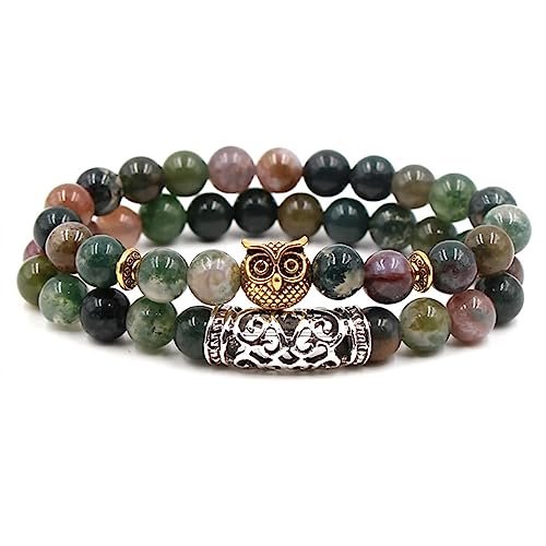 YRYRYW Schmuck Set of 2 Bracelets with Buddha Helmet Dragon Owl Pendant for Him and Her, Natural Stone Chakra Bracelet, 8 mm, Great Gift for Women, 19 cm Household faucets