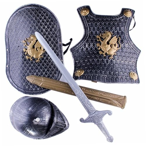 Grtheenumb Medieval Armor, Knight Costume Kids 4Pcs/Set Dragon Pattern Medieval Knight Armor Includes Helmet, Shield, Sword, and, Kids Dress Up Costumes for Role Play, Cosplay, Halloween
