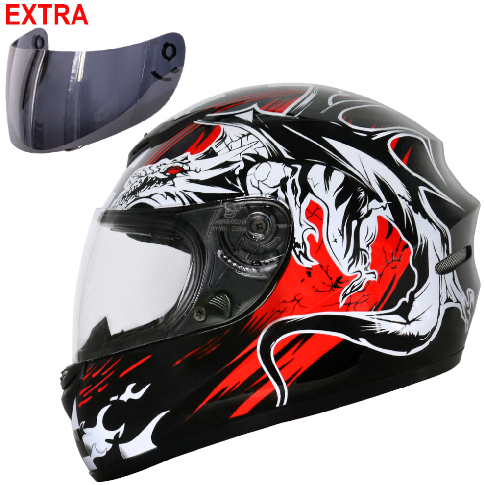 (Black Dragon + Clear Visor, XS) ZORAX ZOR-819 Bike Full Face Motorcycle Helmet Motorbike Crash Helmet On Road + Optional Visor