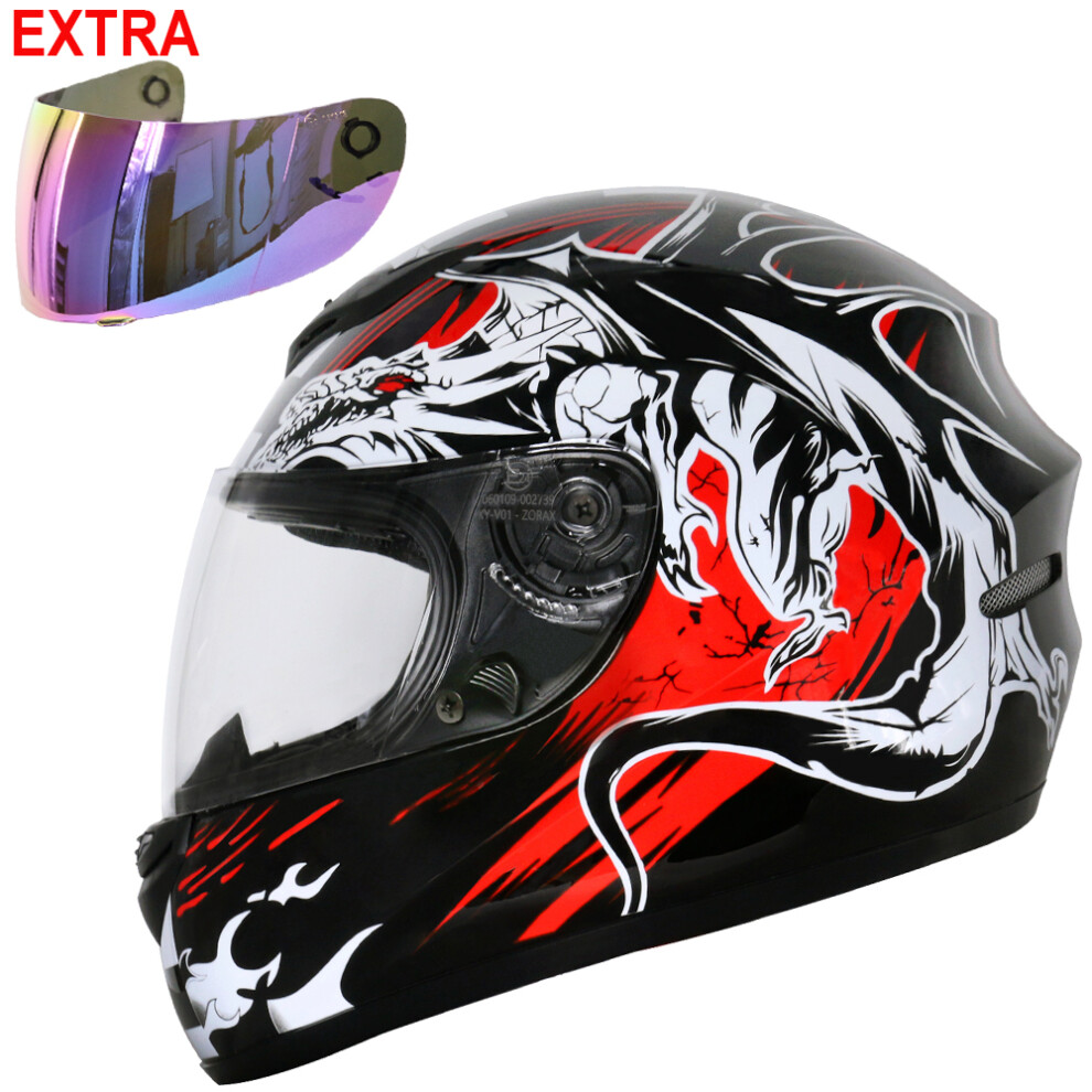 (Black Dragon + Iridium Visor, XS) ZORAX ZOR-819 Bike Full Face Motorcycle Helmet Motorbike Crash Helmet On Road + Optional Visor