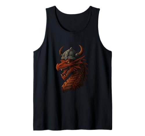 Nordic Viking Dragon in Helmet Mythical Norse Epic Vintage Tank Top